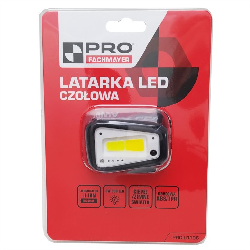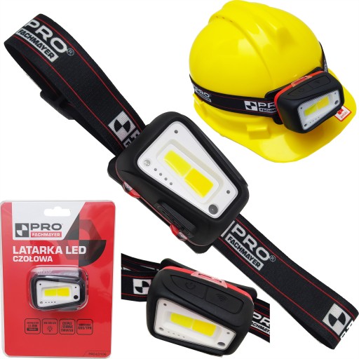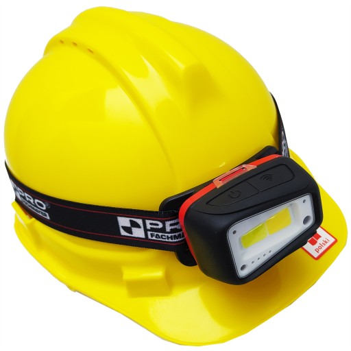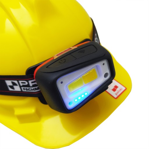 - Nowoczesna latarka czołowa, wyposażona w pasek COB LED 8W (światło ciepłe oraz światło zimne) oraz sensor ruchu