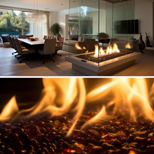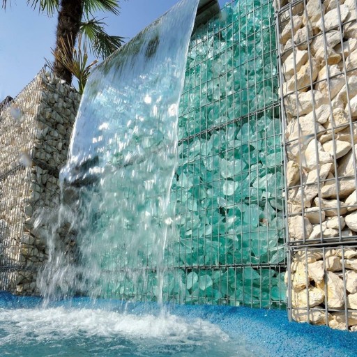 Lawa szklana może być też stosowana jako efektowne wypełnienie kominków lub w ramach połączenia z tradycyjnymi kamieniami wewnątrz gabionów czy donic.