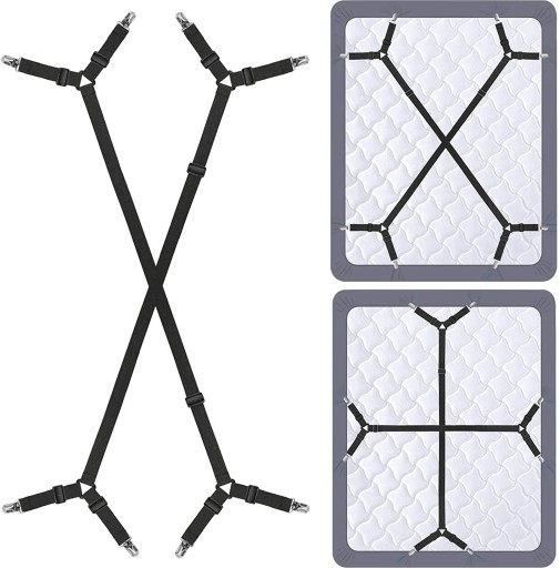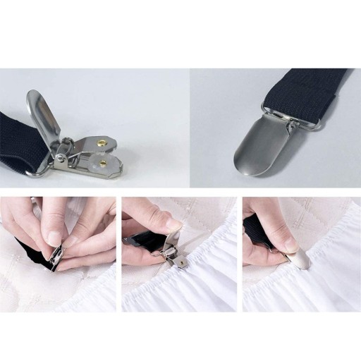 Pasuje do różnych łóżek. Idealny do arkusza dopasowanego i płaskiego, regulowana długość pozwala na pożądane napięcie. Świetnie nadaje się do pościeli i pokrowców materacowych pasków; Klipsy na obrusy.