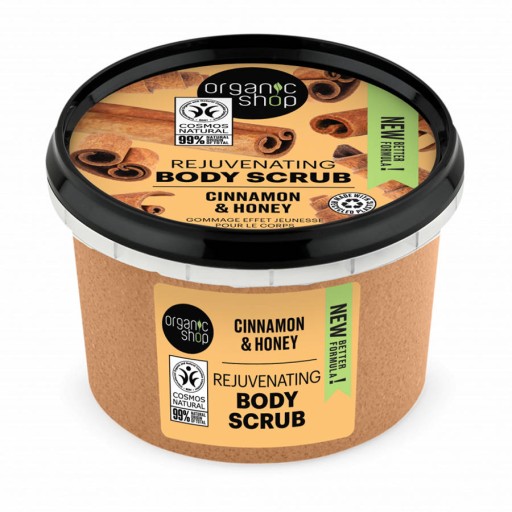 Zawierający 99,54% składników naturalnych cukrowy peeling do ciała. Podaruj skórze wyjątkową opiekę za sprawą aromatycznego peelingu do ciała na bazie organicznego ekstraktu z cynamonu, organicznego miodu i naturalnego cukru. Cynamon i cukier posiadają właściwości łagodzące i kojące, a miód nasyca skórę witaminami, efektywnie ją odmładzając i regenerując.