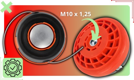 Dzięki standardowemu lewemu gwintowi M10x1,25 pasuje do 99% kosiarek spalinowych. Proste otwieranie i regulacja za pomocą pokrętła sprawiają, że obsługa jest wyjątkowo łatwa.