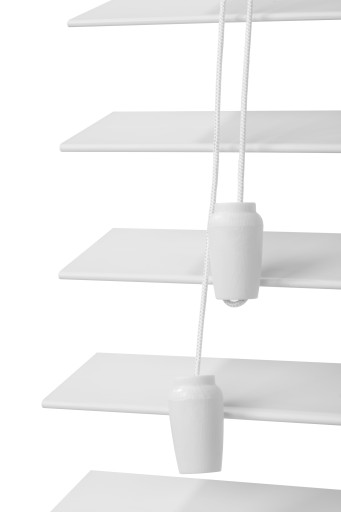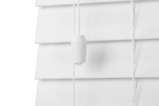 - Sterowanie za pomocą sznurków (prawa strona – podnoszenie i opuszczanie żaluzji, lewa strona – obracanie lamelek)