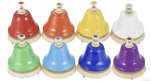 - UNIWERSALNE- Zestaw 8 ręcznych dzwonków może być bardzo użyteczny w różnych sytuacjach, takich jak w szkole, w kościele, na wydarzeniach kulturalnych lub sportowych, gdzie potrzebne jest przyciągnięcie uwagi publiczności. Dzwonki są łatwe do trzymania w dłoni. Można je również łatwo przetransportować z jednego miejsca do drugiego, co czyni je idealnym dla np nauczycieli muzyki.
