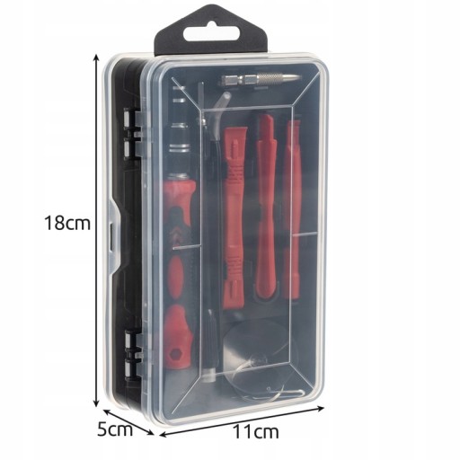 W skład zestawu wchodzą nie tylko wysokiej jakości wkrętaki, ale również baza z powlekaną rączką z antypoślizgowej gumy, pęseta, kątowe otwieracze do obudowy, przyssawka do demontażu szyb oraz szpilka do wysuwania kart SIM, zwiększając efektywność Twojej pracy.