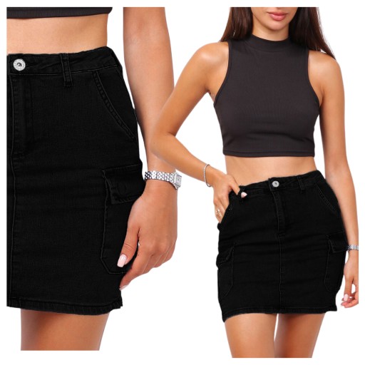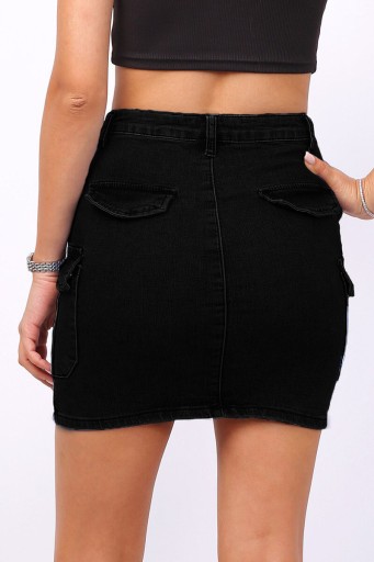 P114 ЧЕРНАЯ ДЖИНСОВАЯ ЮБКА С КАРМАНАМИ МИНИ-ЮБКА-КАРГО 36 S