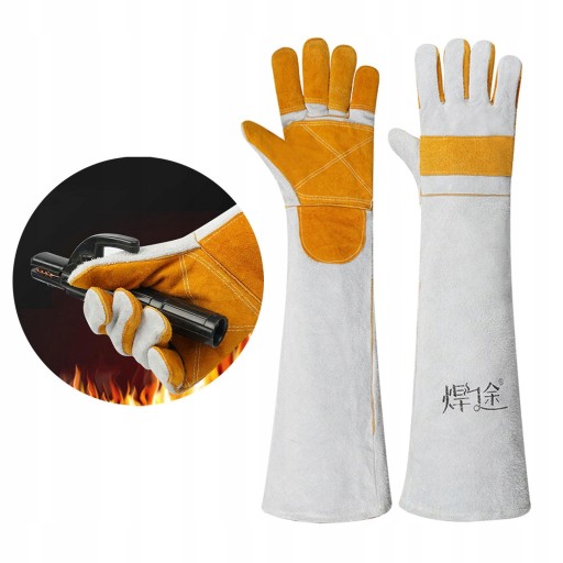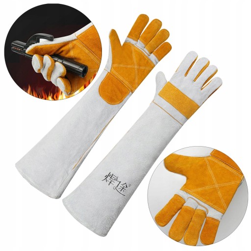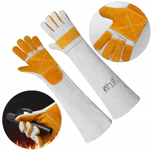 Wykonane z wysokiej jakości skóry bydlęcej, mocne i trwałe, zręczność, odporność na ścieranie i komfort, ognioodporność i odporność na ciepło