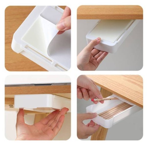 Dzięki zastosowaniu samoprzylepnej taśmy montażowej, ten organizer na długopisy i drobiazgi łatwo przymocujesz pod blatem biurka, zachowując czystość i porządek na powierzchni roboczej.