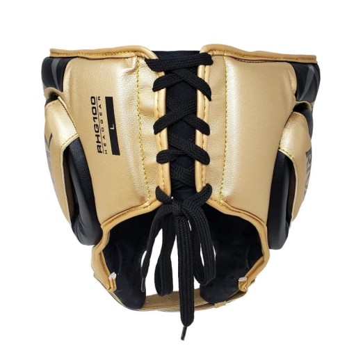 Kask bokserski Rival RHG100 ze złotymi akcentami - poczuj się jak lew w ringu!