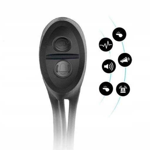 Nasze urządzenie posiada również w zestawie przewodowy przycisk do zamontowania na kierownicy umożliwiający sterowanie sygnałami dźwiękowymi odtwarzanymi z głośnika wbudowanego w lampkę! Dzwonek jest na tyle głośny, że słychać go nawet z wnętrza jadącego drogą samochodu! Dzwonek posiada 6 różnych trybów sygnalizacji, które możesz łatwo zmienić nawet podczas jazdy. UWAGA: sygnał dzwonka ma aż 120 dB, przetestuj go przed pierwszym użyciem w bezpiecznych warunkach.