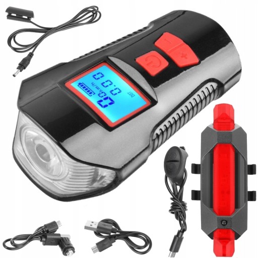 LAMPKA ROWEROWA LED LICZNIK PRĘDKOŚCIOMIERZ LAMPKA KIESZONKOWA + DZWONEK