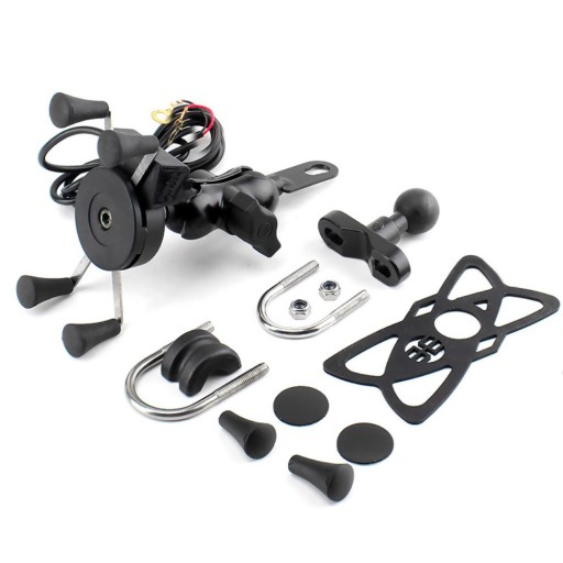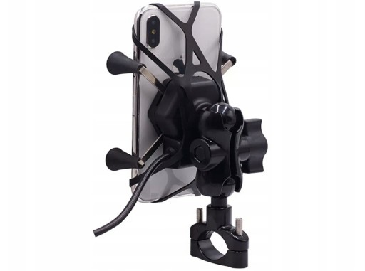 ✅ Uchwyt typu X z 4 ramionami zakończonymi gumowymi chwytakami, ładowarką USB, włącznikiem i kablem