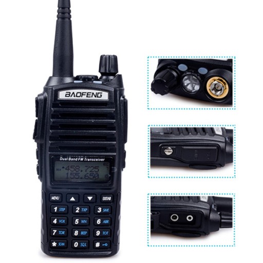 Radiotelefon Baofeng UV-82 HTQ USB-C 2800 mAh jest profesjonalnym radiem krótkofalarskim, które idealnie sprawdzi się w pracy, do rodzinnych wyjazdów, spacerów itp. Baofeng UV-82 HTQ USB-C to dwupasmowy radiotelefon (duobander) o mocy 5 watów z podwójnym wyświetlaczem, klawiaturą DTMF i funkcją Dual Watch.