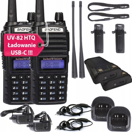 - 2x Radio Baofeng UV-82 HTQ USB-C 2800 mAh