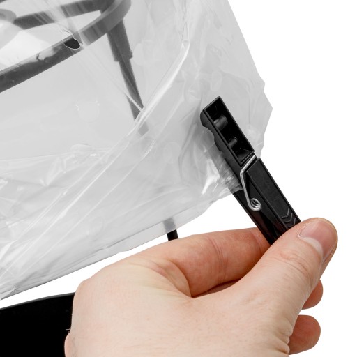 ✅ W komplecie znajduje się plastikowy talerz - parasol, stanowiący główny element konstrukcji, mocna folia o perforowanej powierzchni, klipsy mocujące do foli, spinacze i wężyk.