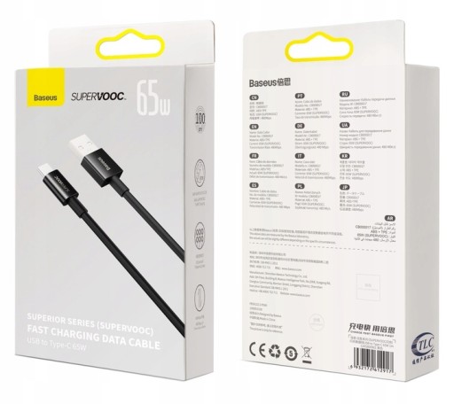 КАБЕЛЬ BASEUS USB TYPE-C 65 Вт SUPERVOOC WARP CHARGE для OPPO REALME ONEPLUS 2 м