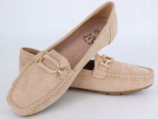 WYGODNE BALERINY MOKASYNY LORDSY BEŻOWE BUTY ZAMSZOWE WIOSENNE 41