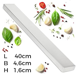 - ➕ Wysokiej jakości stal nierdzewna: higiena jest szczególnie ważna w kuchni. Wysokiej jakości stal nierdzewna uchwytu magnetycznego noża jest łatwa do czyszczenia, a do tego wygląda bardzo nowocześnie.