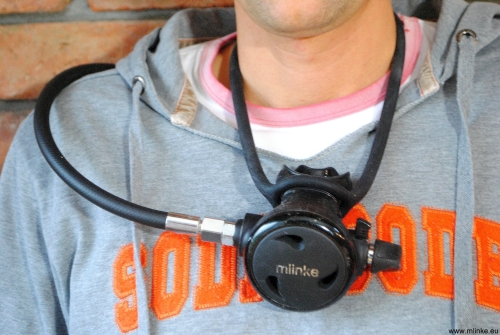 Guma mocowania automatu zapasowego (octopusa) na szyi nurka.