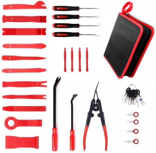 PROFESJONALNY Zestaw Narzędzi Ściągaczy do demontażu Tapicerki samochodowej Plastików Radia 38 elementów