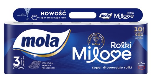 Mola Milove to wyjątkowe rolki z unikalnym tłoczeniem 3D w kształcie poduszeczek w technologii Softpillow® dzięki czemu papier jest miękki i wytrzymały