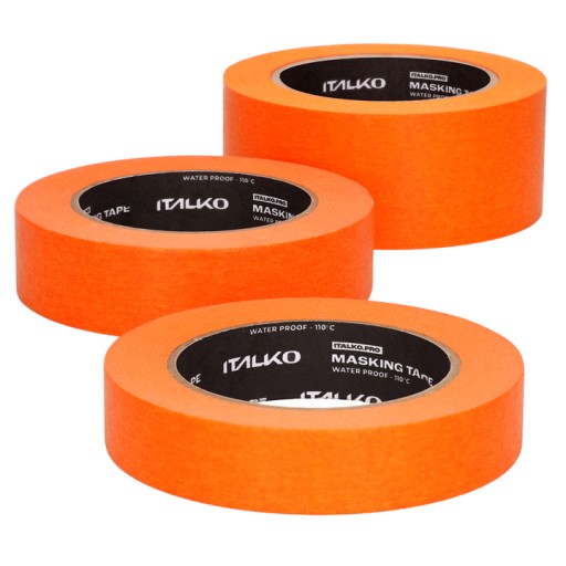 Wodoodporna taśma maskująca marki ITALKO, wykonana z trwałego papieru strukturalnego w połączeniu z klejem na bazie kauczuku naturalnego.
