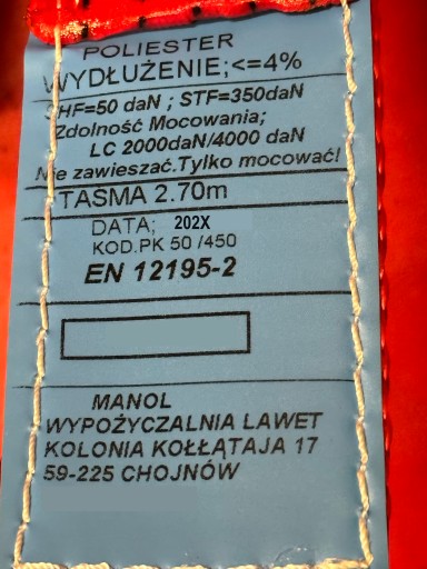 wytrzymałość pasa [na opasaniu]: LC=4000 daN