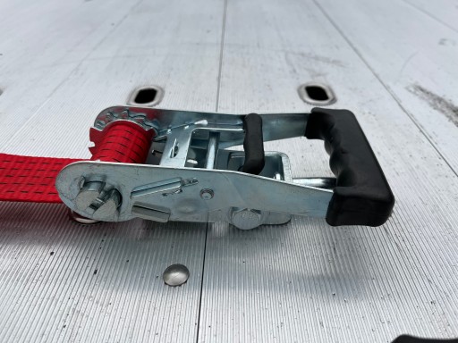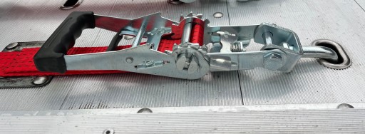 Rączka napinacza pasa GUMOWANA, co znacznie ułatwia spinanie ładunku, nie wymaga użycia większej siły
