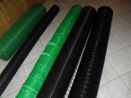 ze 100% Polipropylenu (tworzywo polimerowe wieloskładnikowe, odporne na wiele trudnych warunków) + filtr UV. Siatka jest tania, lekka i bardzo mocna. Wytrzymałość w naszym klimacie ok. 10 lat. Brak zmian na słońcu, mrozie i nasiąkania śniegiem czy deszczem.