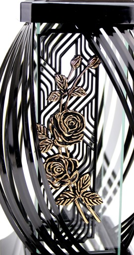 Ofertą sprzedaży jest 1szt. znicza - typ LAMPION WSTĘGA AŻUR ze ZŁOTĄ RÓŻĄ o pięknym efekcie świecenia