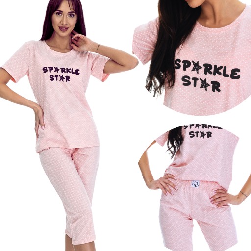 ПИЖАМА ЖЕНСКАЯ, БРЮКИ С РУКАВОМ 3/4, KUBA PINK, ЗВЕЗДНЫЙ ПРИНТ, XXL