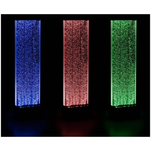 Efektowna ściana wodna marki Uniprodo pozwala nadać wyjątkowy akcent w lobby hotelowym, poczekalni czy przestrzeni biurowej. Gra ruchu i światła tworzy stymulujący nastrój w każdym pomieszczeniu i staje się ciekawą atrakcją. Kolumna wodna LED składa się z akrylowego korpusu wypełnionego wodą umieszczonego na mocnej stalowej podstawie. Dzięki wymiarom 390x260x200 mm jest ona niezwykle stabilna i bez problemu ustawisz ściankę wodną w pomieszczeniu. Przewód zasilający o długości 1.5 m zapewnia swobodę ruchów. Przezroczysty zbiornik napełnia się wodą za pomocą węża o długości 2500 mm. Ściana wodna stanowi zamknięty system, który jest chroniony przed parowaniem i rozpryskami przez odporną na korozję osłonę ze stali nierdzewnej. W podstawę wbudowana jest pompka, która w sposób ciągły powoduje unoszenie się pęcherzyków powietrza do wypełnionego wodą korpusu. Dzięki 39 zintegrowanym lampom LED bąbelki są skutecznie oświetlane zarówno od dołu, jak i od góry. Kontrola nad światłem odbywa się za pomocą pilota o zasięgu 3 m, więc z łatwością ustawia się różne kolory i efekty świetlne w ścianie wodnej. Oprócz licznych barw w kolorach RGB dostępne są nastrojowe oświetlenie migające, stroboskopowe, blaknące i wygaszające.