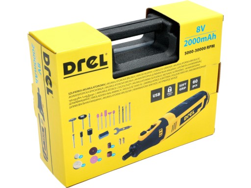 SZLIFIERKA AKUMULATOROWA MINI PRECYZYJNA USB 5000-30000RPM + 60 AKCESORIÓW