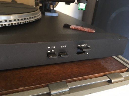 W gramofonie zamontowałem wkładkę Audio Technica , posiadającą oznaczenie Marantz 500 z nową oryginalną igłą eliptyczną ( kolor zielony ) Audio Technica, tym razem z oznaczeniem Toshiba, gdyż dla tej firmy Audio Technica też dostarczała wkładki. Nie ma to znaczenia. Wszystko do siebie pasuje idealnie i gra świetnie. Znacząco podniosło to jakość odtwarzania degradowaną w PRL'u stosowaniem wkładek licencyjnych MF-100 ( i wyższych numerów).