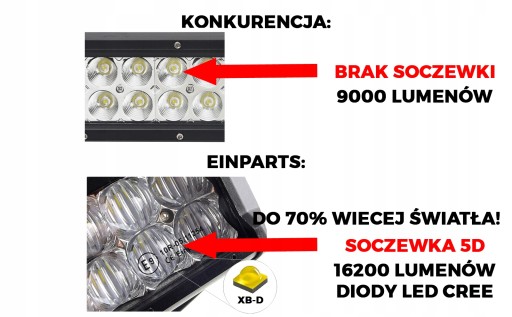 Dzięki wykorzystaniu oryginalnych diod CREE wraz z najnowszą generacją odbłyśników i soczewek 5D uzyskaliśmy jeszcze większą moc emitowanego światła