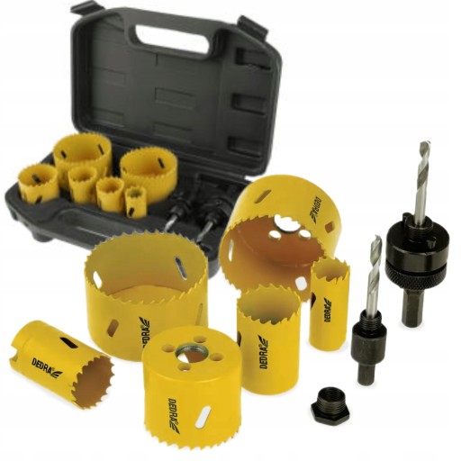 Zestaw DEDRA 08WZ01 składa się z dwóch sztuk uchwytów oraz sześciu sztuk otwornic bi-metalowych służących do wykonywania otworów w takich materiałach jak: metal, stal nierdzewna, metalach nieżelaznych, aluminium, drewnie czy w plastiku.