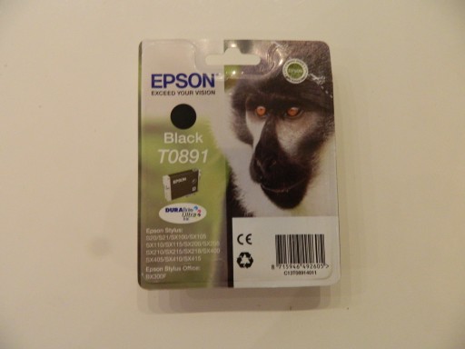 TUSZ ORYGINAŁ EPSON T0891 BLACK. Nowy, fabrycznie zamknięty. Po terminie. Data: 2018. Nie wpływa to na jakość wydruków. Gwarancja rozruchowa 2 m-ce.