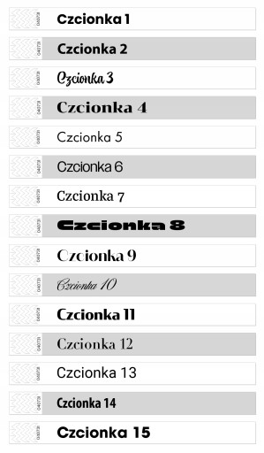 Poniżej przedstawiamy 15 najpopularniejszych wariantów czcionek wybieranych przez naszych klientów: