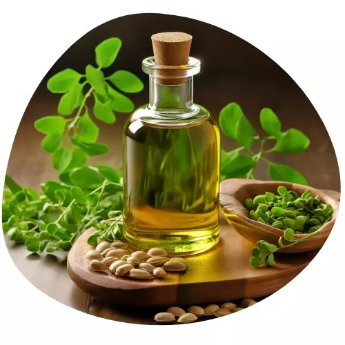 Olej z nasion moringi jest znany ze swoich właściwości antyoksydacyjnych i zdolności do oczyszczania włosów i skóry głowy. Działa jako naturalny filtr UV i pomaga w ochronie koloru włosów.