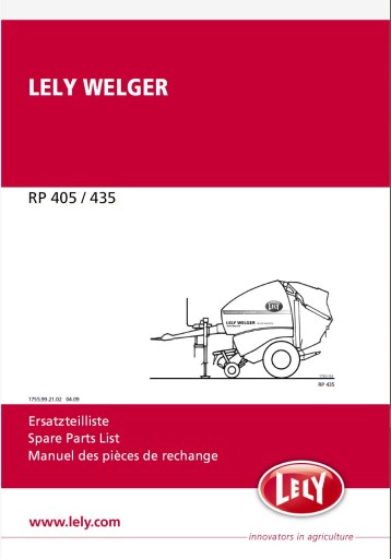 Каталог запчастей пресс-подборщика LELY WELGER RP 405 435