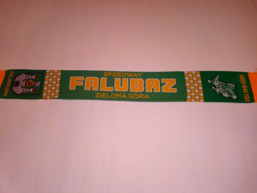 FALUBAZ-szal dziany,dwustronny, na końcach żółte frędzle.Napis na szaliku--SPEEDWAY--FALUBAZ--ZIELONA GÓRA--druga strona--DUMNI PO ZWYCIĘSTWIE-ZIELONA GÓRA-WIERNI PO PORAŻCE.