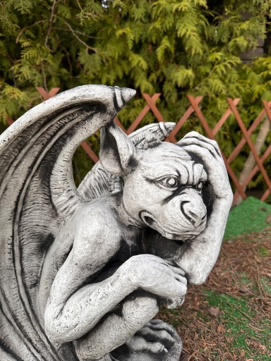 Figurka wykonana jest z wysokiej jakości betonu - malowana jest specjalnymi farbami odpornymi na warunki atmosferyczne, dzięki czemu figurki mogą stać na zewnątrz przez cały rok.