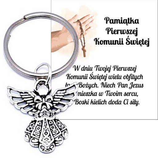 Przedmiotem sprzedaży jest Pamiątka Pierwszej Komunii Świętej w formie karteczki z życzeniami i brelokiem gratis.