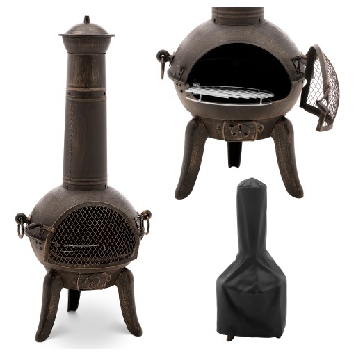 Piecyk tarasowy marki Uniprodo zapewnia przytulne ciepło w chłodne letnie noce i tworzy przyjemną atmosferę. Piecyk wykonany został z żeliwa, które równomiernie pochłania i rozprowadza ciepło ognia. Paliwo znajduje się na trzech rusztach o średnicy 28,5/25/14,5 cm. Pozwalają one oddzielić popiół aby płomień w piecu nie zgasł przedwcześnie. Jako opał można użyć drewna, węgla lub węgla drzewnego. Dołączony pogrzebacz pozwala równomiernie rozłożyć paliwa w piecu. Drzwiczki piecyka wykonano z siatki. Otwarta konstrukcja zapewnia potrzebny dopływ tlenu bez ulatniania się iskier. Długa rura kominowa pozwala odprowadzić dym na zewnątrz. W przypadku deszczu należy zabezpieczyć rurę pieca osłoną i zapobiec gromadzeniu się wilgoci na zewnątrz.