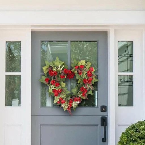[Dekoracje na Walentynki] Wianek z czerwonych róż na drzwi wejściowe jest elegancki i romantyczny, doskonale nadaje się na dekoracje walentynkowe i prezent na walentynki, aby wyrazić prawdziwą miłość.