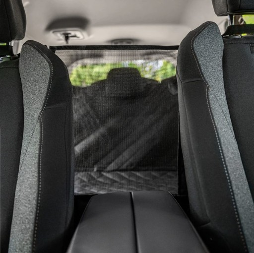 Dzięki odpinanemu zamkowi pomiędzy siatką a prawą częścią maty, istnieje możliwość podróżowania obok swojego psa na tylnej kanapie.