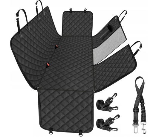 ŁATWY MONTAŻ I BEZPIECZEŃSTWO – matę wystarczy rozłożyć na tylnej kanapie auta i przyczepić ją za pomocą zaczepów do zagłówków i uchwytów bocznych; specjalne szczeliny na pasy umożliwiają przypięcie zwierzęcia dla zachowania bezpieczeństwa.