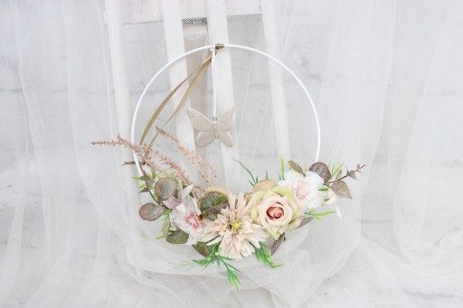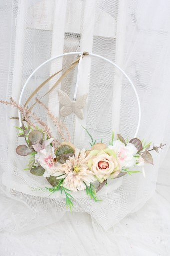 Obręcz wianek wiosenny wieniec dekoracja domu okna beżowa