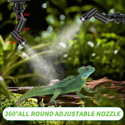 System mgły terrarium pomaga przywrócić gadom i roślinom do ich zwykłej natury lasów deszczowych Właściwości Dysza jest regulowana 360° tak, aby szybko i we wszystkich kierunkach wilgoć do terrarium. Tworzy środowisko lasu deszczowego dla gadów, dzięki czemu mogą żyć wygodnie i zdrowo w swoim terrarium. System mgły gadów wyposażony jest w duży wyświetlacz LED i ekran dotykowy i posiada dwa tryby pracy: tryb ręczny i tryb automatyczny mgły. Dzięki niewielkim rozmiarom opryskiwacz można zainstalować w dowolnym rogu i posiadać trzy opcje montażu: wspornik płaski, wspornik przyssawki i uchwyt hakowy. Niski poziom hałasu w celu uniknięcia problemów z hałasem. Specyfikacje Materiał: Plastik mMetal Rozmiar opakowania: 20.5 x 21.5 x 6.5 cm Waga: 700 gram zawartość opakowania 1 x Główna jednostka 1 x Głowica zasilająca 2 x 360° głowica natryskowa 1 x Wąż PE 5m 1 x Instrukcja użytkowania 1 x Przecinarka rur 1 x Głowica samozasylająca 1 x