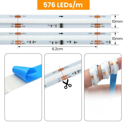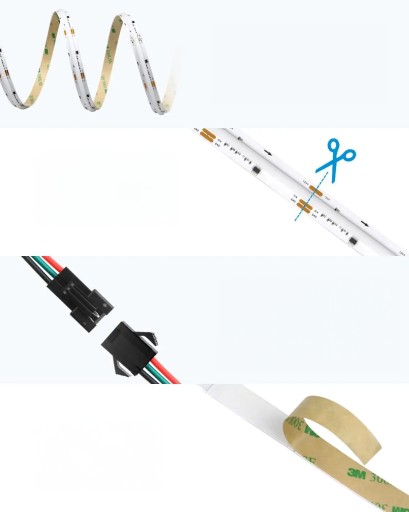 - Taśmę COB można ciąć co 6,2cm, do łączenia polecamy specjalne złączki lub lutowanie ( oczywiście dla osób doświadczonych w pracy z takimi urządzeniami)