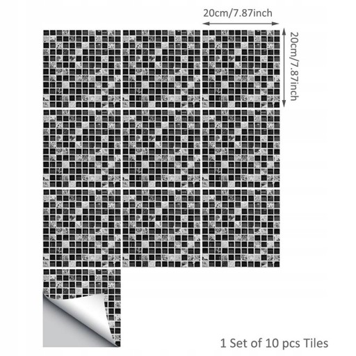 Czarno-biała Mozaika Naklejka Kuchnia Łazienka Podłoga Dekoracja ścienna B